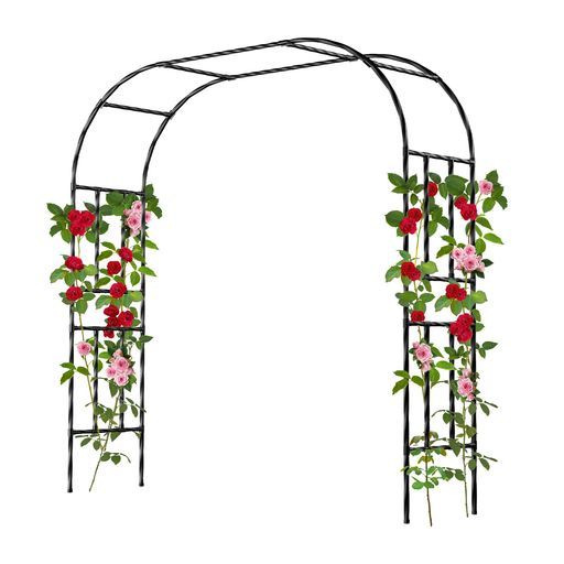Caroeas アーチフラワーアーチ金属製幅180 x奥行40 x高さ240 cm屋外用錆びにくいパイプ径20 mm組立簡単ガーデンアーチトレリス園芸 ブラック