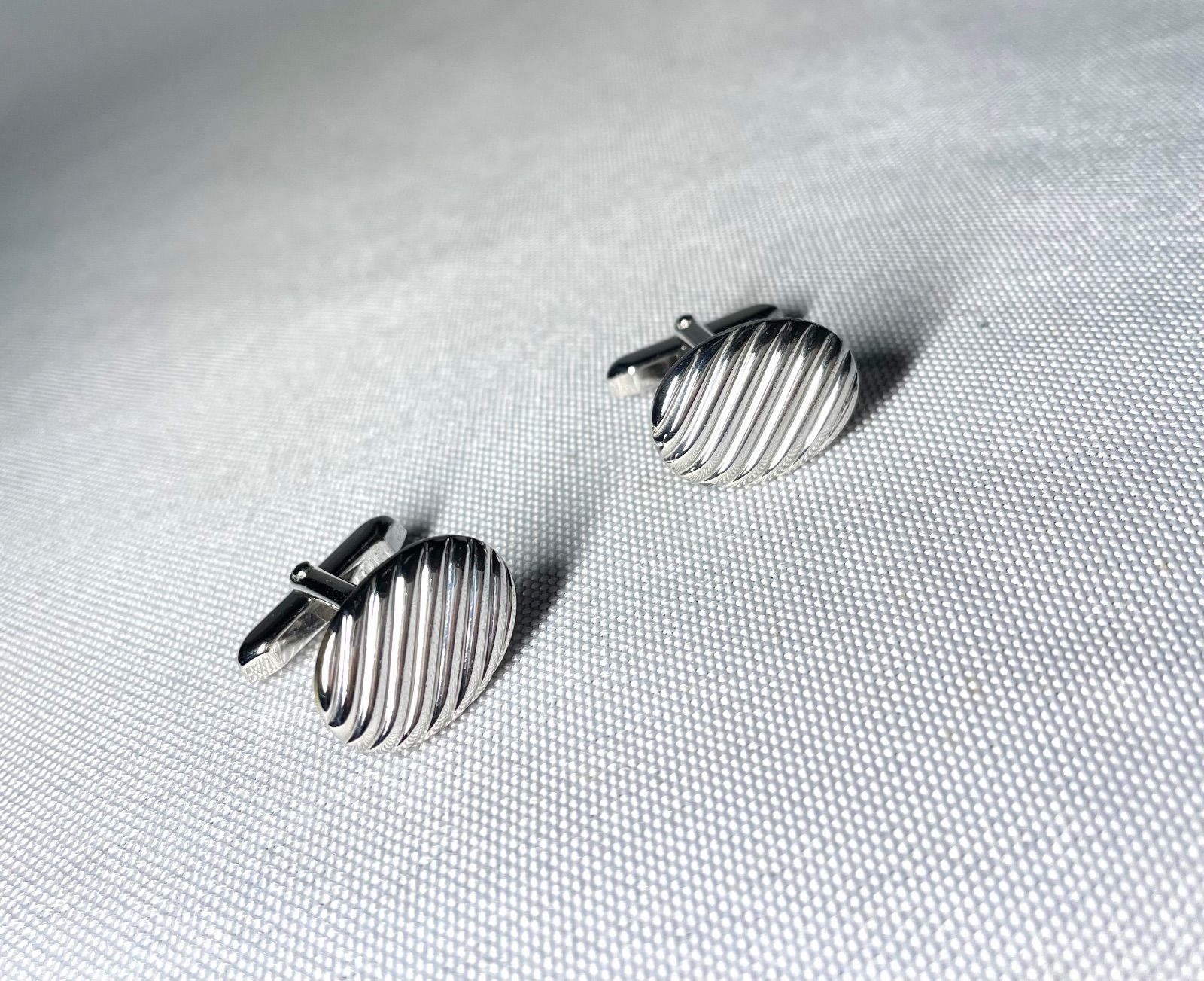 LOEWE ロエベ 斜めストライプライン スターリングシルバー SV 925 オーバルカフス カフリンクス ボタン メンズ