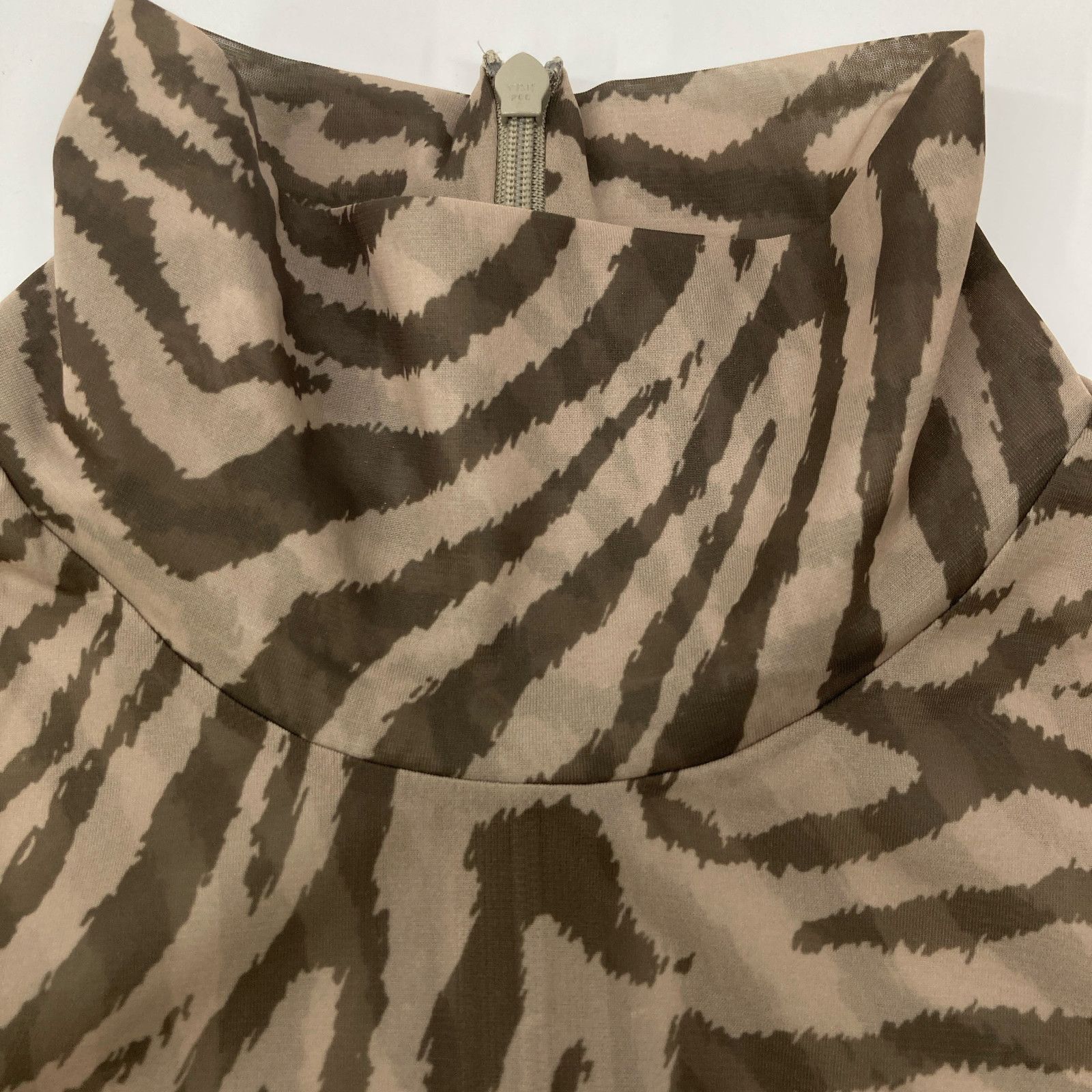 タイプ)23A62309 カーキ ゼブラ柄 ハイネックシアーロングスリーブカットソー