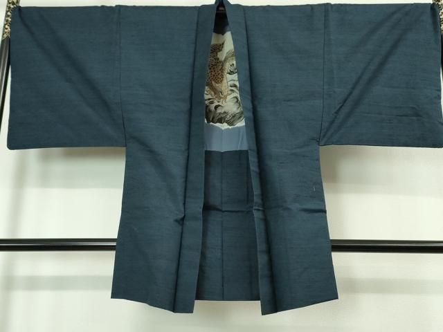 平和屋着物 上 男性 紬 アンサンブル 長羽織 色無地 藍鉄色 羽裏 鷹 kh 5