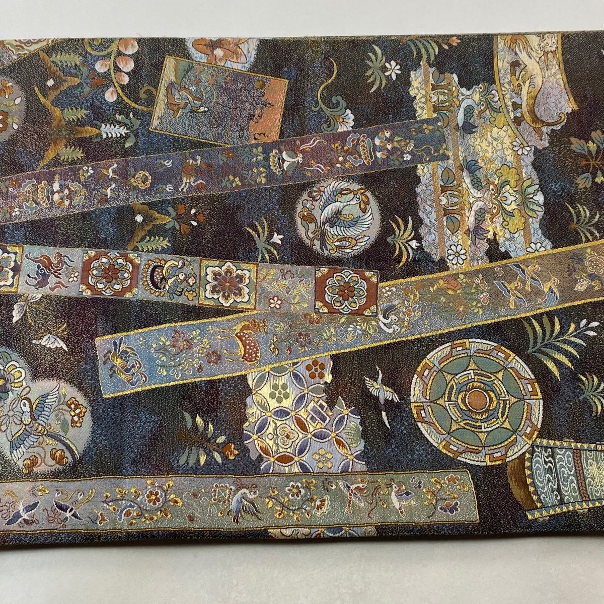 丸帯 温故智新 冊子 花鳥 金糸 箔 金色 全通 正絹