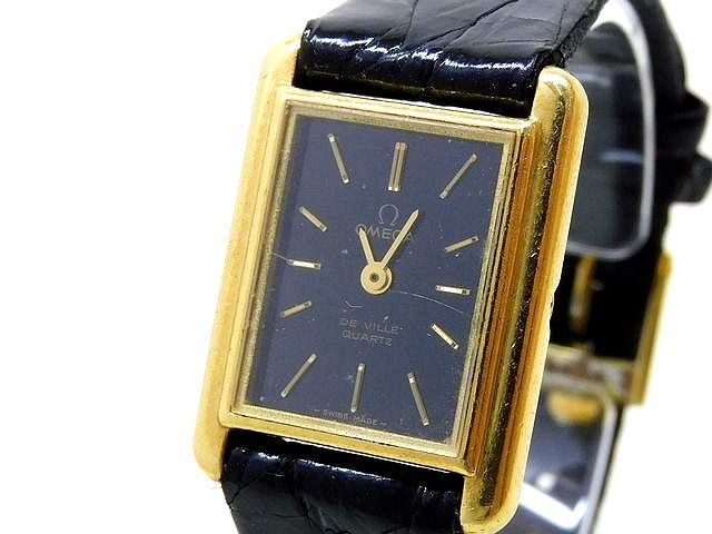 3F オメガ 時計 ■ 591.0029 K18 プッシュリューズ De Ville デビル スクエア レディース 腕時計 クォーツ アンティーク OMEGA □7I