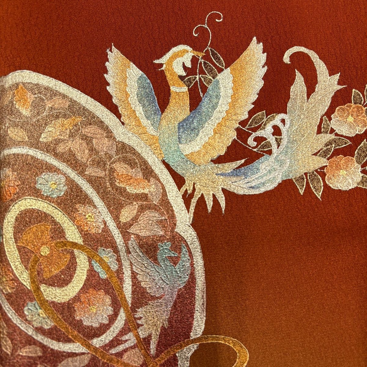 付下げ 身丈159.5 cm 裄丈67 M 袷 和田光正 落款 鏡裏文 花鳥 金銀彩 赤茶 正絹 名品