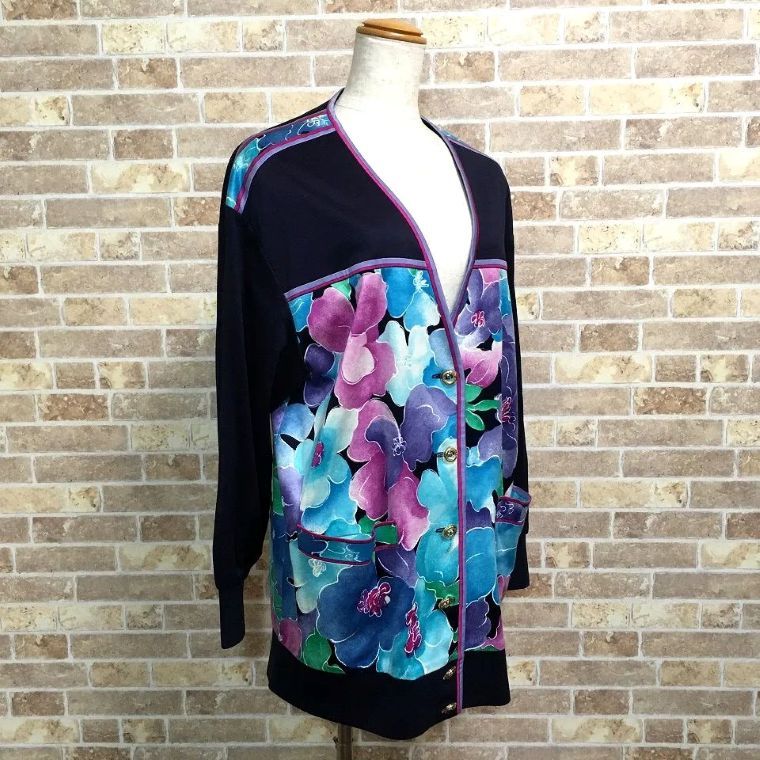 み LEONARD カーディガン M 花柄 綿100% 464