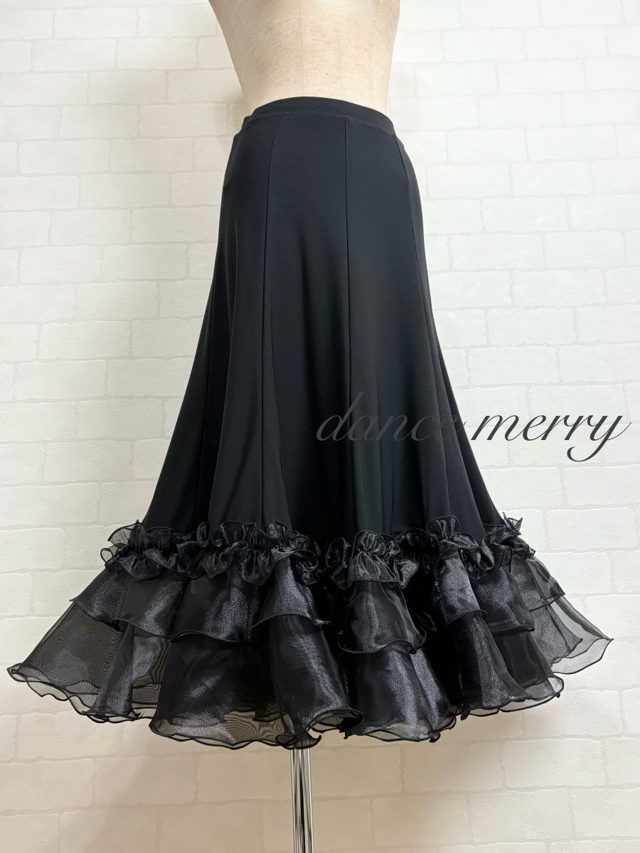 MERRY 社交ダンス 黒 スカート 豪華 パーティ ワルツ クイック 0387
