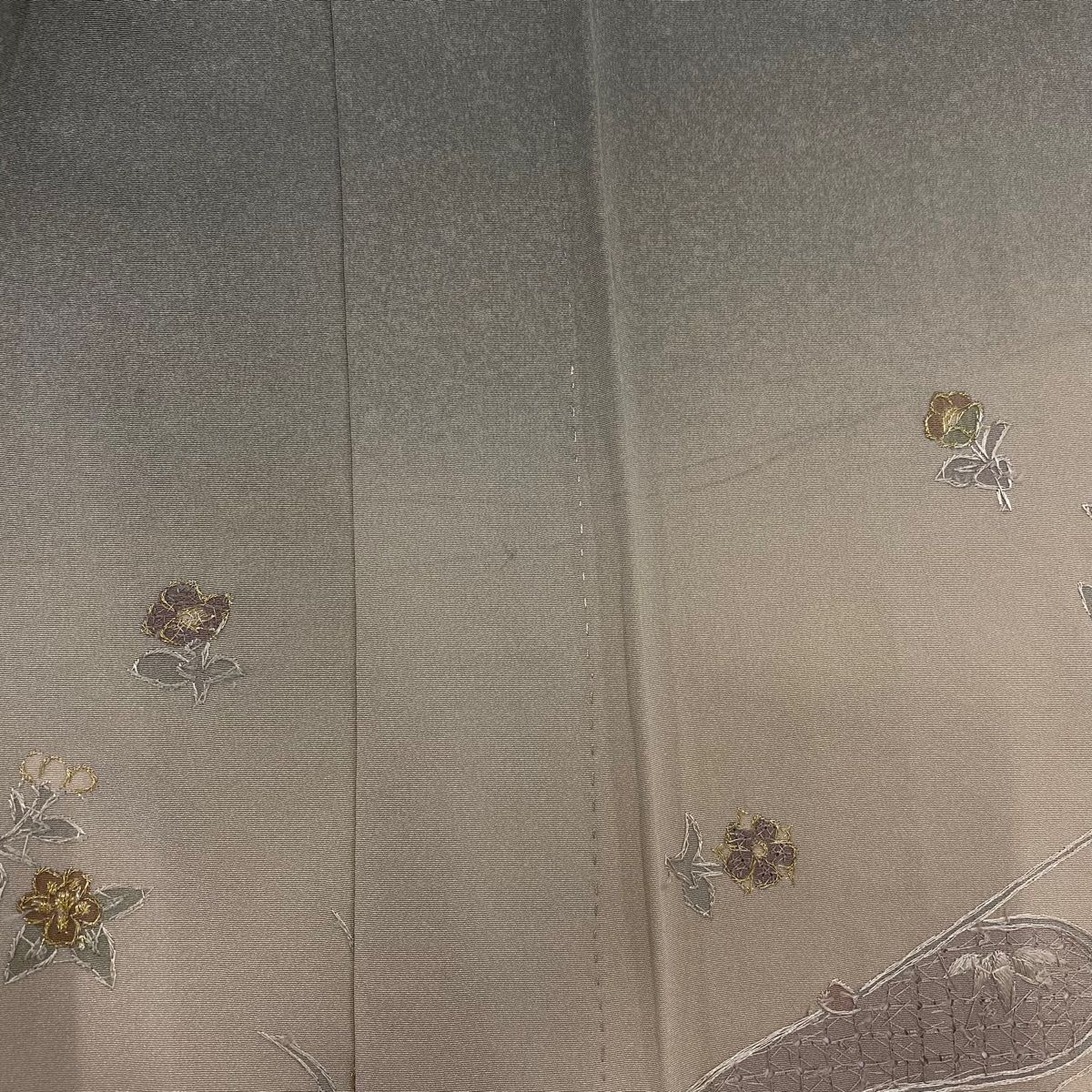 訪問着 身丈160.5 cm 裄丈64 M 単衣 華文 草花 刺繍 金糸 灰緑 正絹