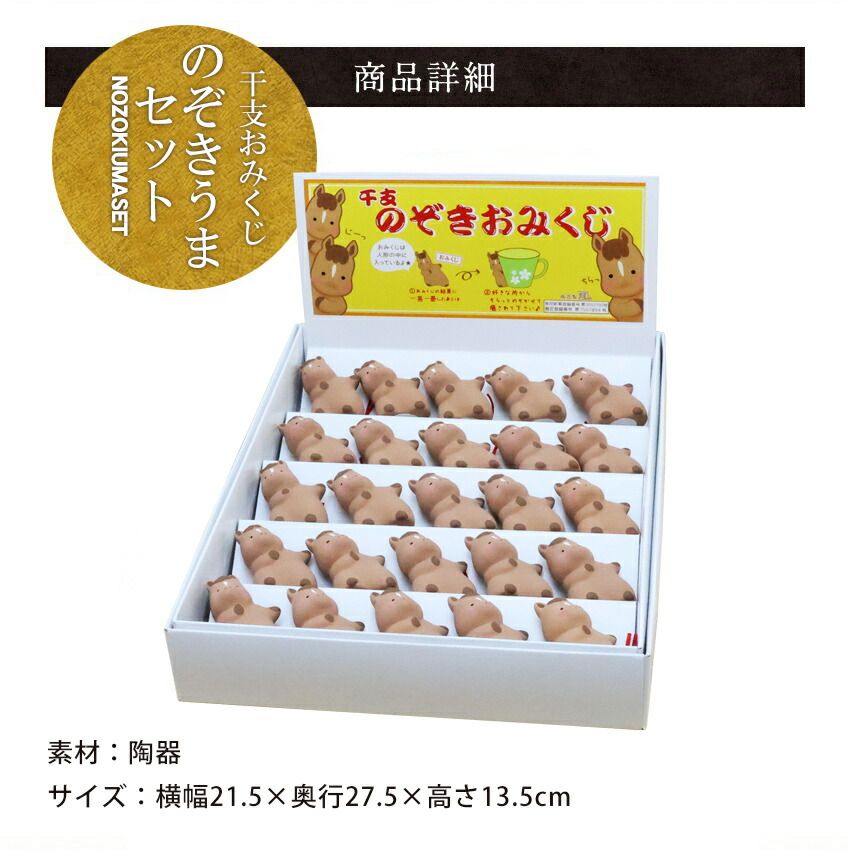 正月飾り 干支午 午 置物 おみくじ のぞきうまセット 入 陶器 リュウコドウ お正月飾り 干支の置物 迎春飾り 十二支 おしゃれ 馬 ウマ うま 2026 木札 龍虎堂 .干支置物