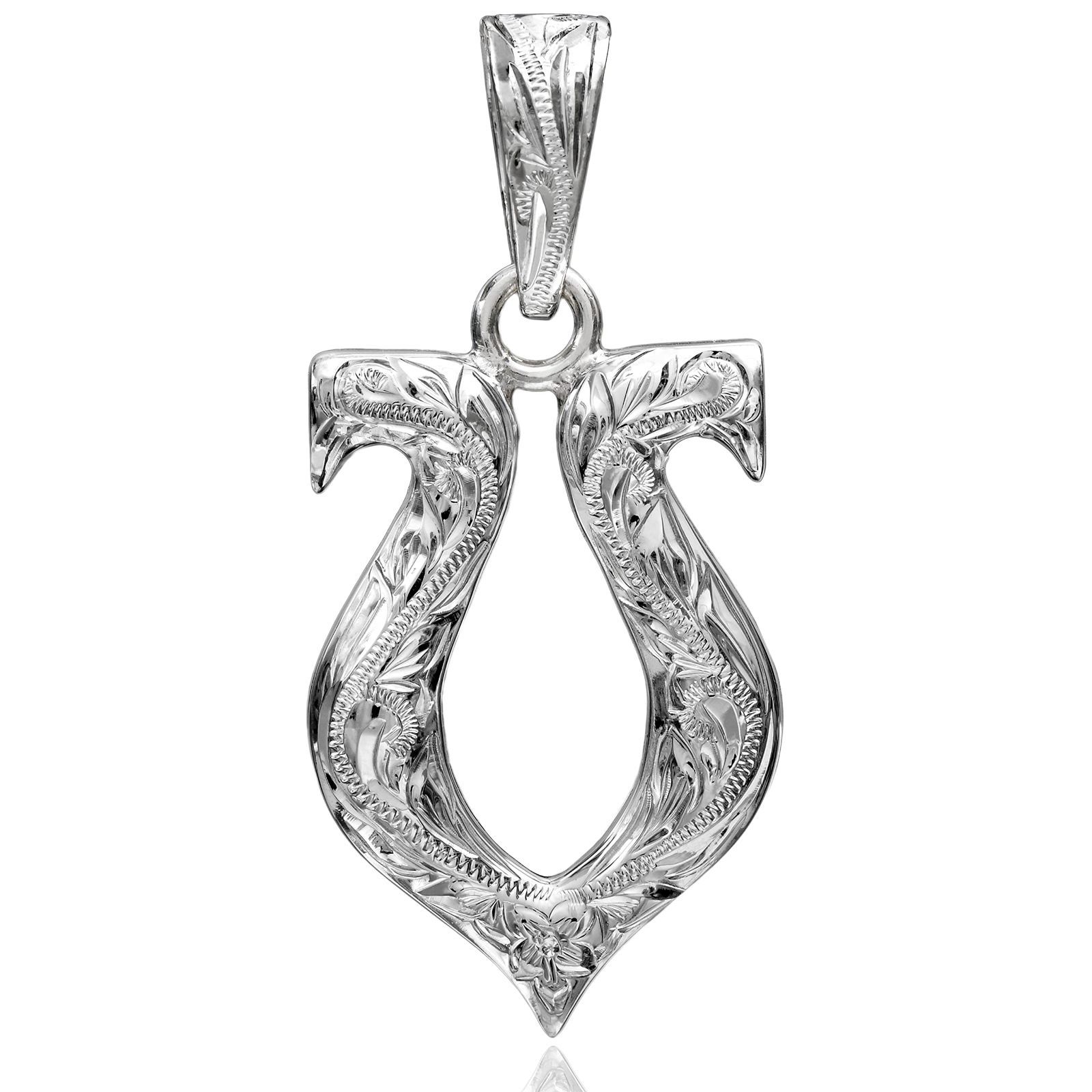 Style チェーンなし レイラニ ハワイアンジュエリー ホースシュー 馬蹄 マイレリーフ&スクロール 波 彫り ペンダント ネックレス メンズ シルバー 925