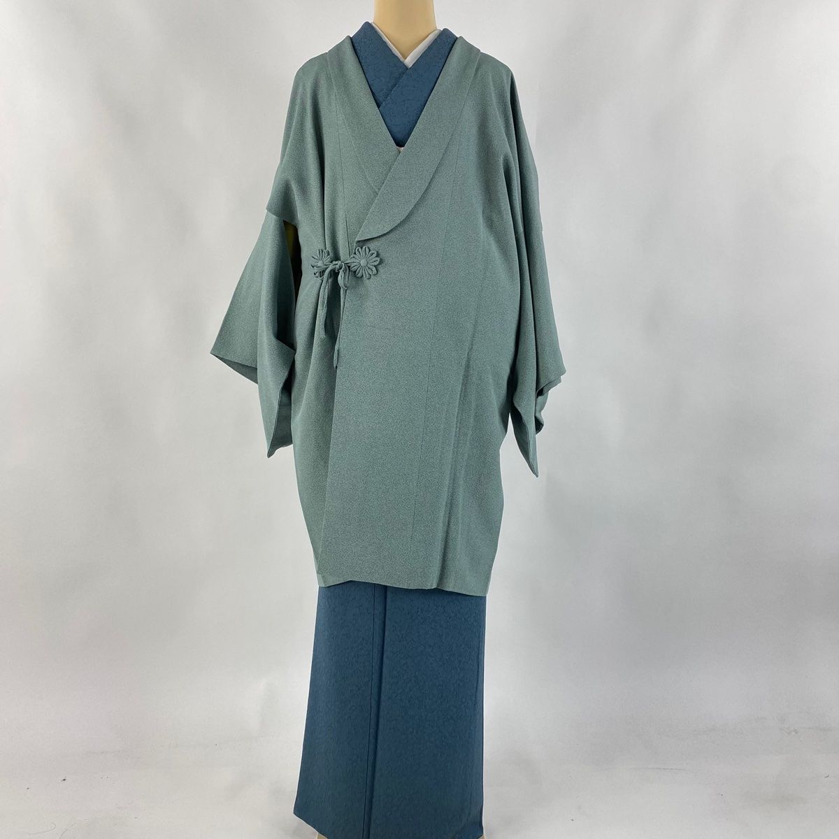 道中着 身丈97 cm 裄丈68 L 和装コート 江戸小紋柄 灰緑 正絹