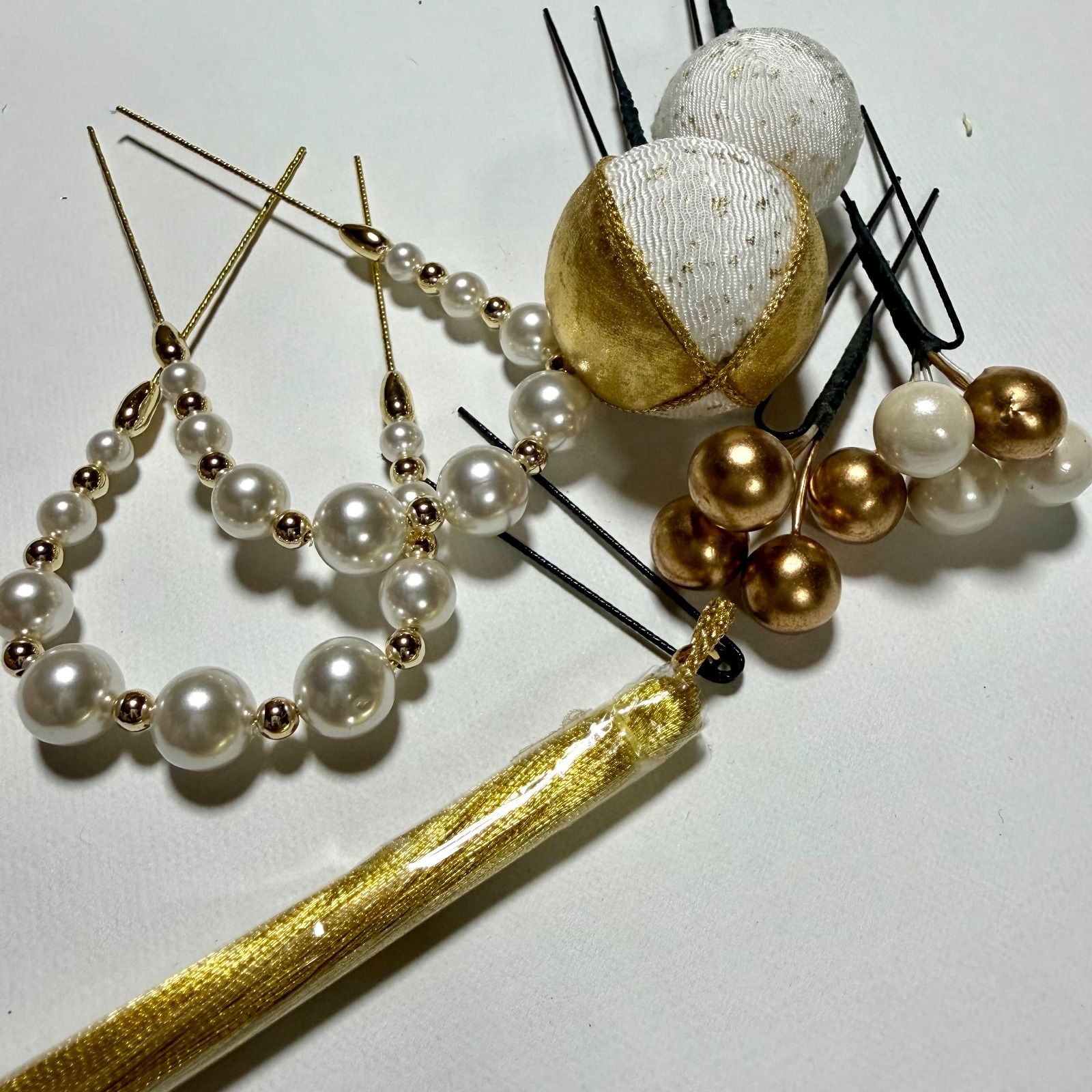 L 172 髪飾り ゴールド 白 百合 ピンポンマム パール タッセル