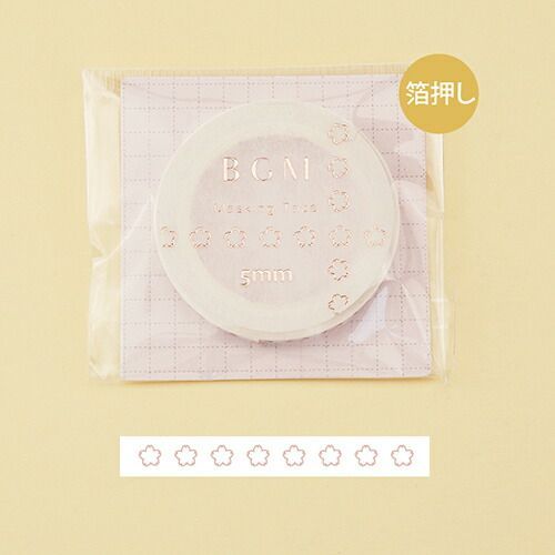 箔押しが施されたマスキングテープです。5mmと細身なのでラインのデコレーションにぴったりです。【検索ハッシュタグ】#マスキングテープ#マステ#ますて#テープ#花#フラワー#さくら#桜#サクラ