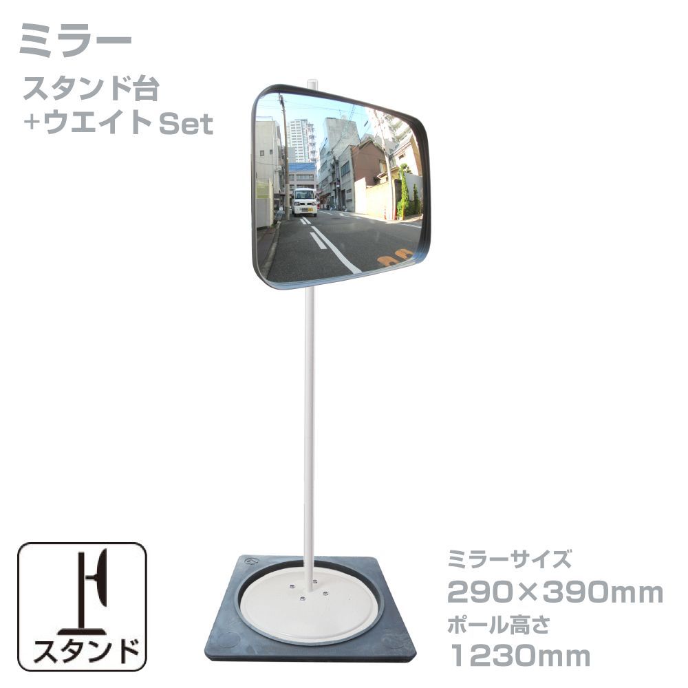 ガレージミラー 家庭用 角型 290 × 390 mm 幅 約40cm スタンド台セット 高1230mm ウェイト付き 重り 転倒防止 取付金具付 ガラス製ミラー yh 1429